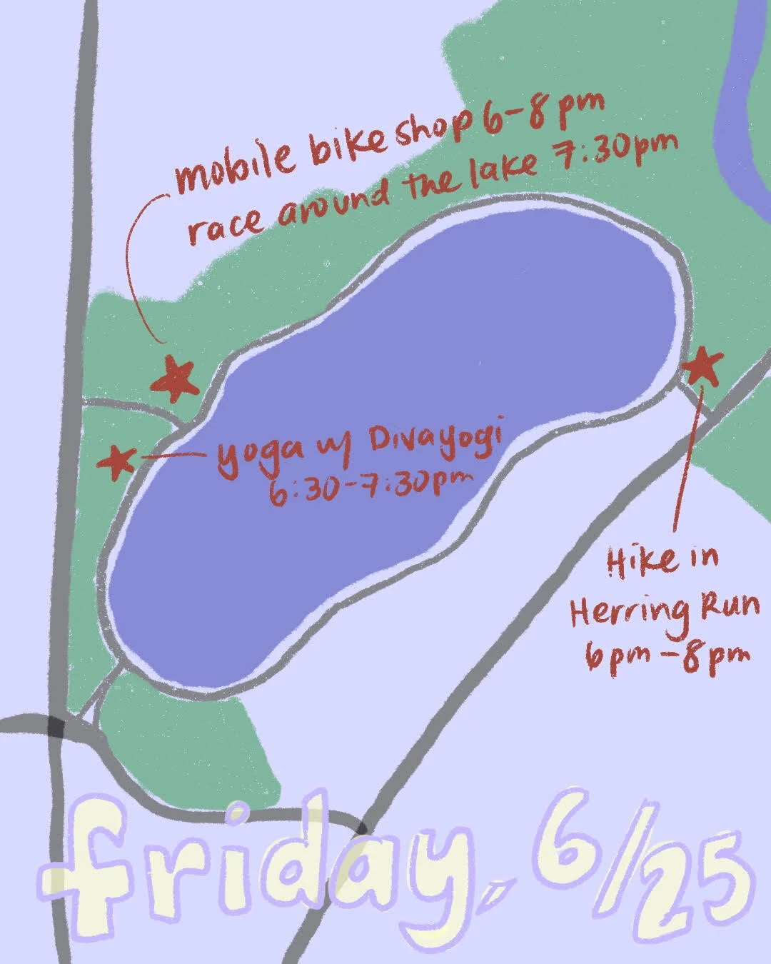 We invite folks to come to Lake Montebello with their wheels (bikes, skates, scooters, chairs) with bike lights to light up Lake Montebello at night and ride with friends! For those that are interested, we’ll also be hosting the following activities: